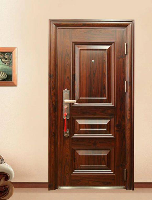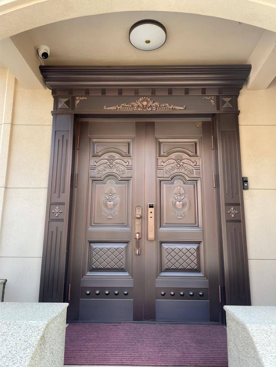 优点:铜纹条理清晰、大气,整体看起来协调、立体感好:不易弯曲变形,耐腐蚀,密度大,隔音效果好;防盗性能强,具备高级防盗锁、保险栓等,同时在门外看不到锁芯,配有内置锁。