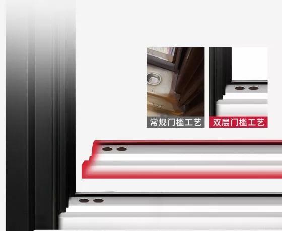 另外,增加了双门槛的设计,既保持美观,也增加了防盗门的承重能力,保证了门不下垂。这也更好地保证了亚斯王安全门用得住,用得久。