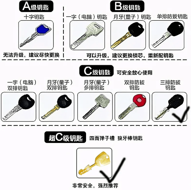 第三,锁具是“心脏”,认准C级还不够。防盗门防盗,关键就在锁。现在最安全的是C级锁芯,比A级、B级防撬时间长10倍以上,买的时候一定要让商家拿出C级锁芯的检测证书。但光有C级锁芯还不够,要看锁体是不是全自动的,有没有防撬、防猫眼开启功能——有些小偷会通过猫眼开门,带防猫眼功能的锁能杜绝这种情况。大品牌的锁具都会有自己的专利,比如王力的自动锁,关门就能自动反锁,比手动锁省心还安全。